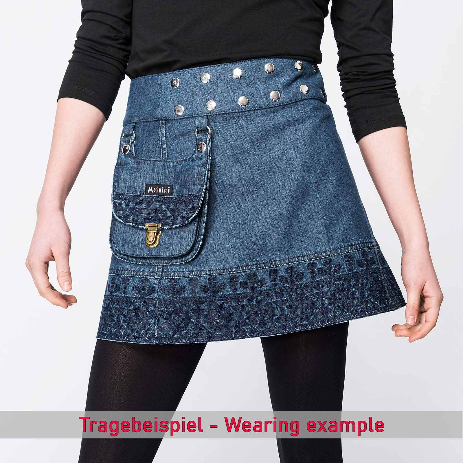 Die entzückenden Hot Cookie 24 Denim Wickelröcke kommen in einer Vielzahl von Blue & Black Washings. Ein Rock aus Denimstoff mit einer abnehmbaren Tasche. Er ist beidseitig tragbar, wobei die eine Seite mit filigranen Stickmustern verziert ist und aus Denimstoff besteht. Die andere Seite ist aus Baumwollstoff gefertigt. Mit den Druckknöpfen kann der Rock an Größen zwischen 34 und 42 angepasst werden. Die Länge des Rocks beträgt 40 cm.