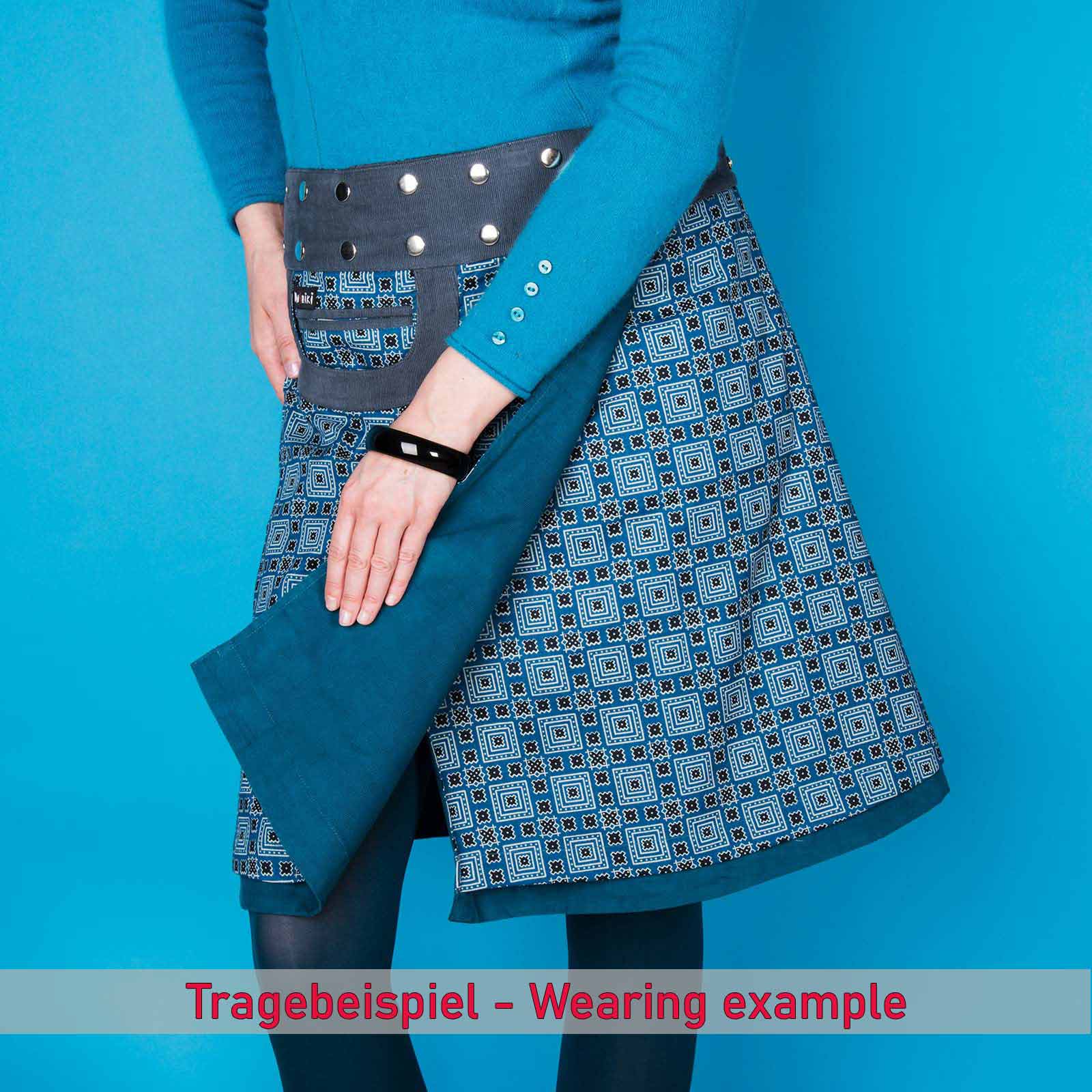 Most of the wrap skirts are reversible; depending on the model, the material on the second side changes in addition to the pattern and color. This means you can easily turn the skirt around and change your style in practically under a minute!