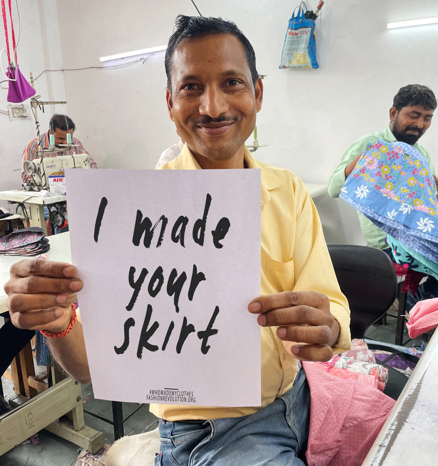 Wir haben vor vielen Jahren unsere eigene Produktion in Indien aufgebaut, der Grund dafür waren mehr Kontrolle und Einfluss in der Produktion zu haben. Wir kennen somit unsere Produktionsleitung und Mitarbeiter persönlich und können faire Arbeitsbedigungen und Löhne sicher gewährleisten. Das ist auch der Grund, weshalb wir mit bestem Gewissen die Kampagne #Imadeyourclothes unterstützen!